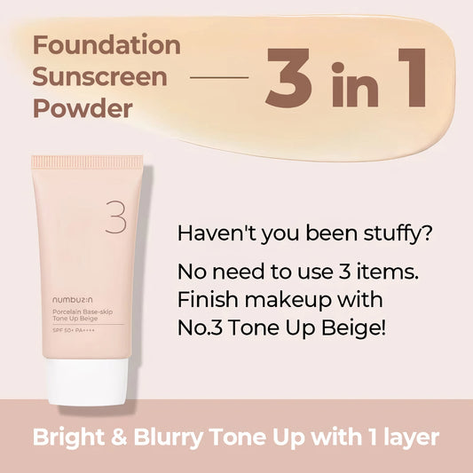Numbuzin - No.3 Porcelain Base-skip Tone Up Beige SPF50+ PA++++ - 50ml
